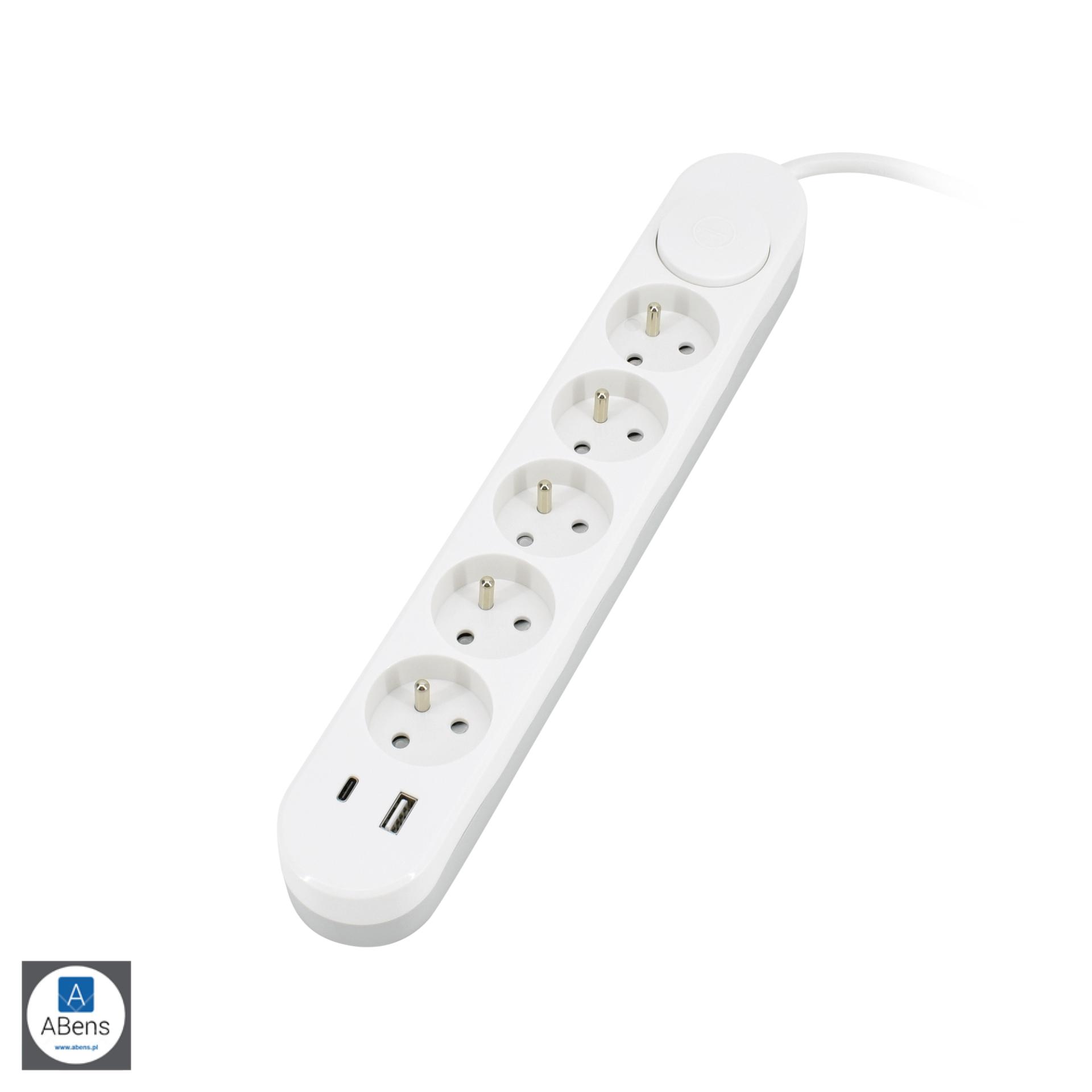 Ställ en fråga om GRENUTTAG 5 VÄGS JORDAT MED BRYTARE 2X USB(C A) 2M
